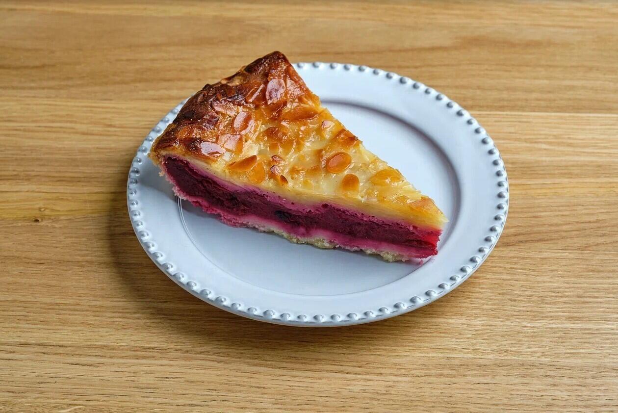 Масло, сливочное, сахарная пудра, яйцо куриное, мука пшеничное, соль, крахмал кукурузный, вишня, ваниль паста, вода, пектин, мука миндальная, орех миндаль, мед цветочный, глюкоза, сливки.