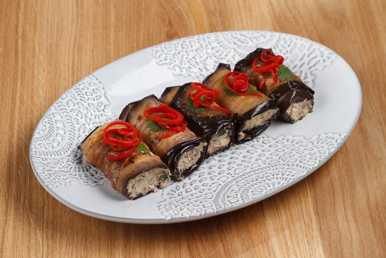 Рулетики из баклажанов с орехами